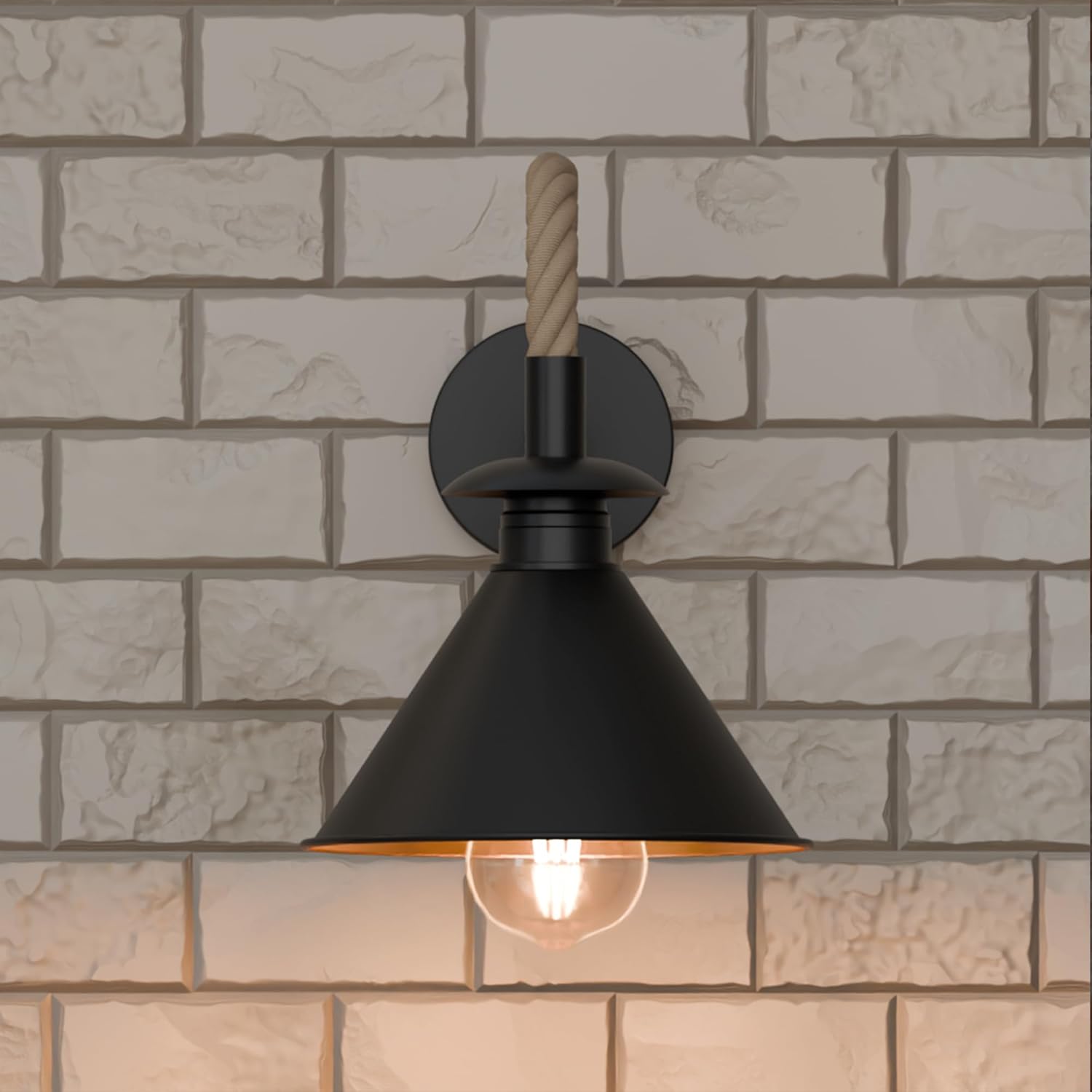- Stijlvolle, vintage wandlamp met een gedraaide, met henneptouw omhulde kabel met kap, ideaal voor interieurdecoratie.
