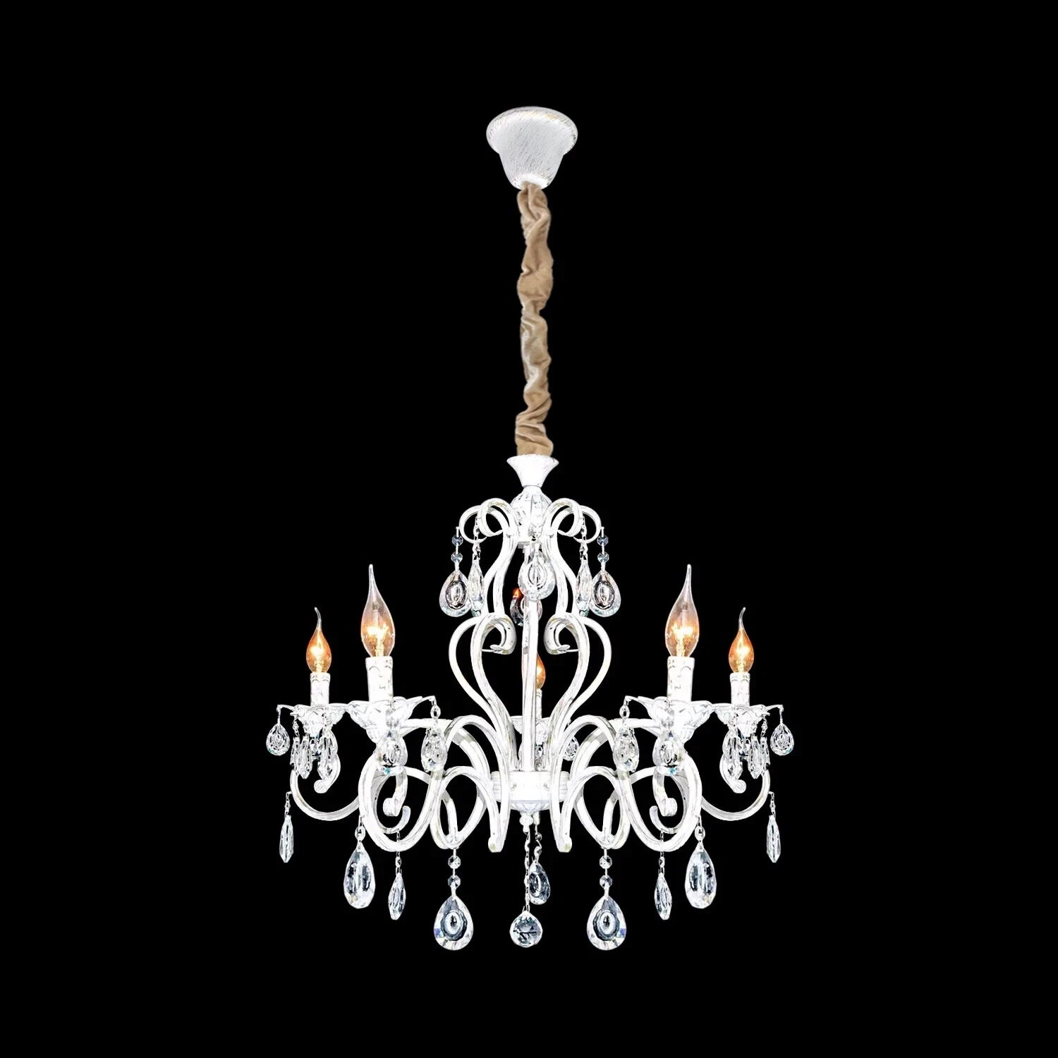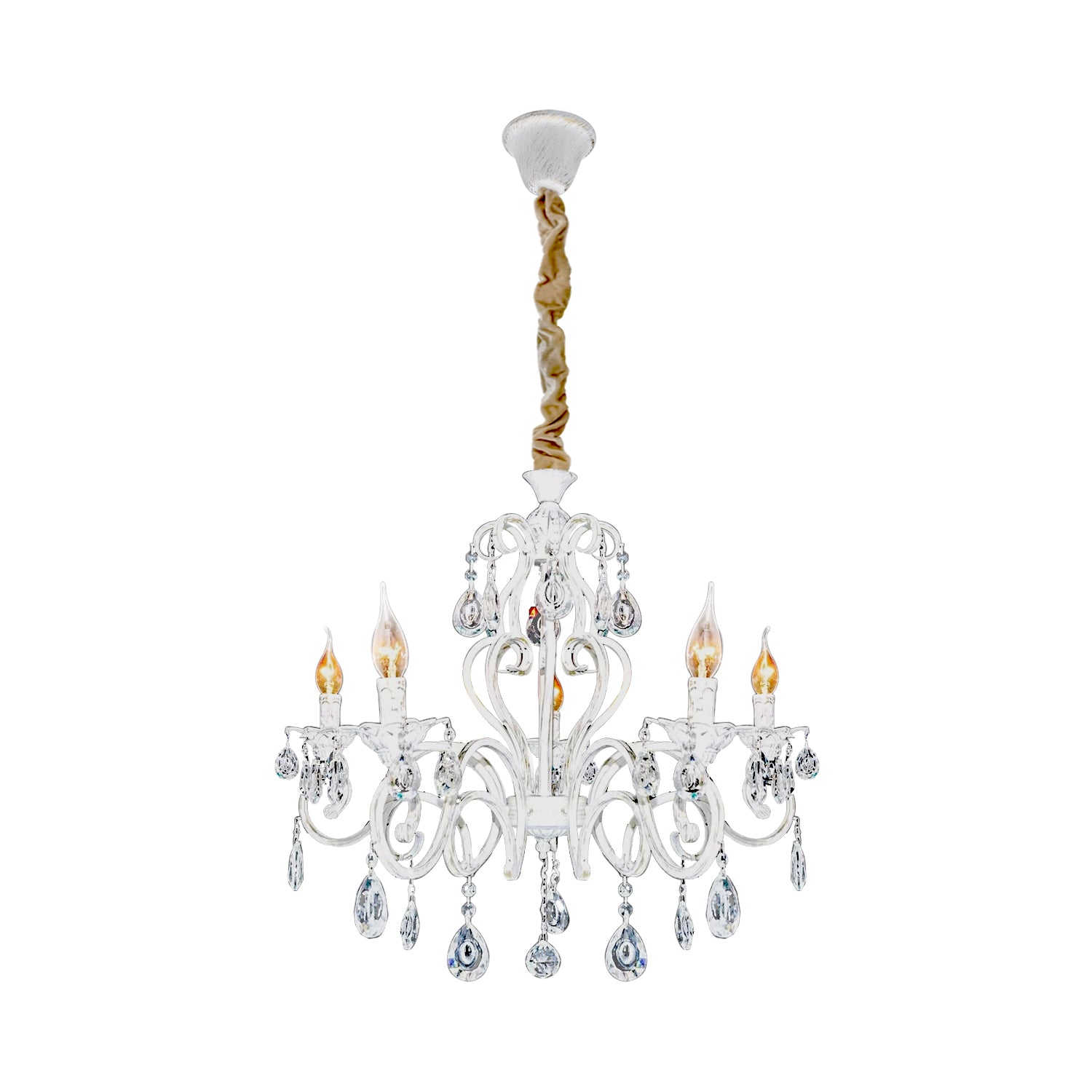 - Traditioneel en klassiek geïnspireerd op Nederlandse kroonluchters met kandelabers en metaaleffect, is de 5-weg witte afwerking.