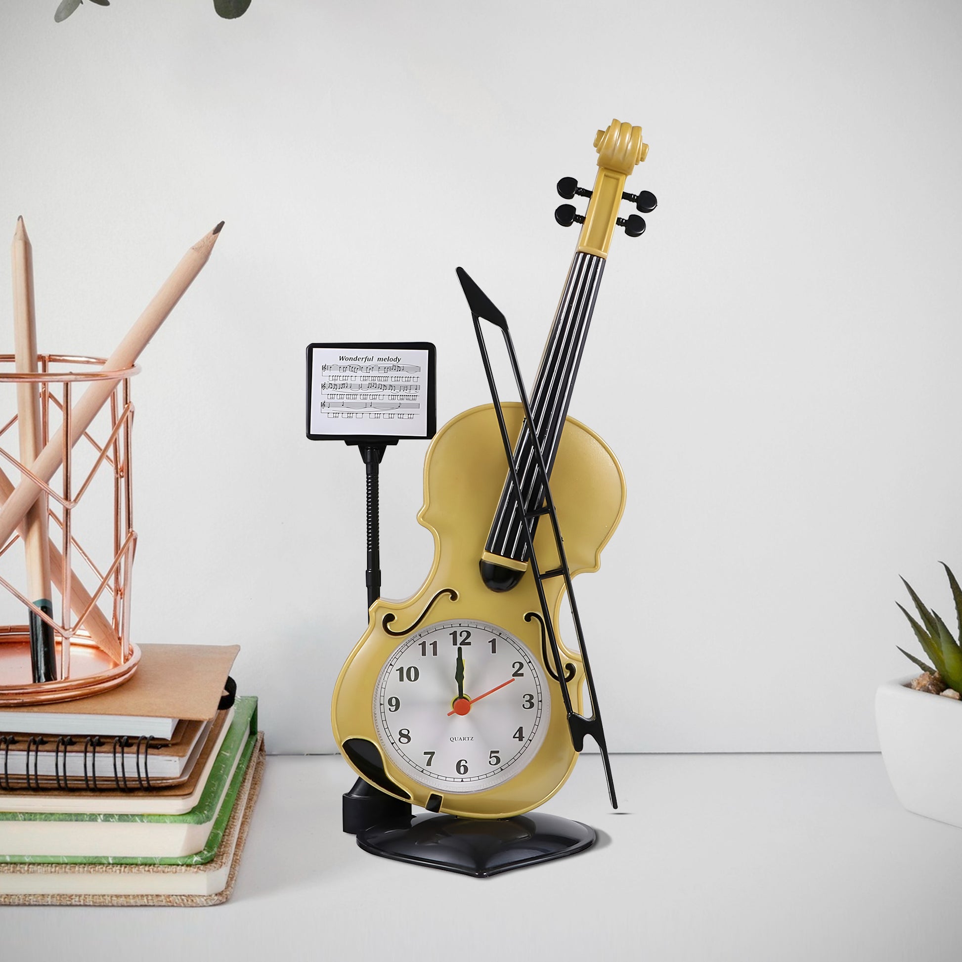 - Deze vioolbureauklok is gemaakt van hoogwaardig kunststof dat duurzaam is, een lange levensduur heeft en niet roest.