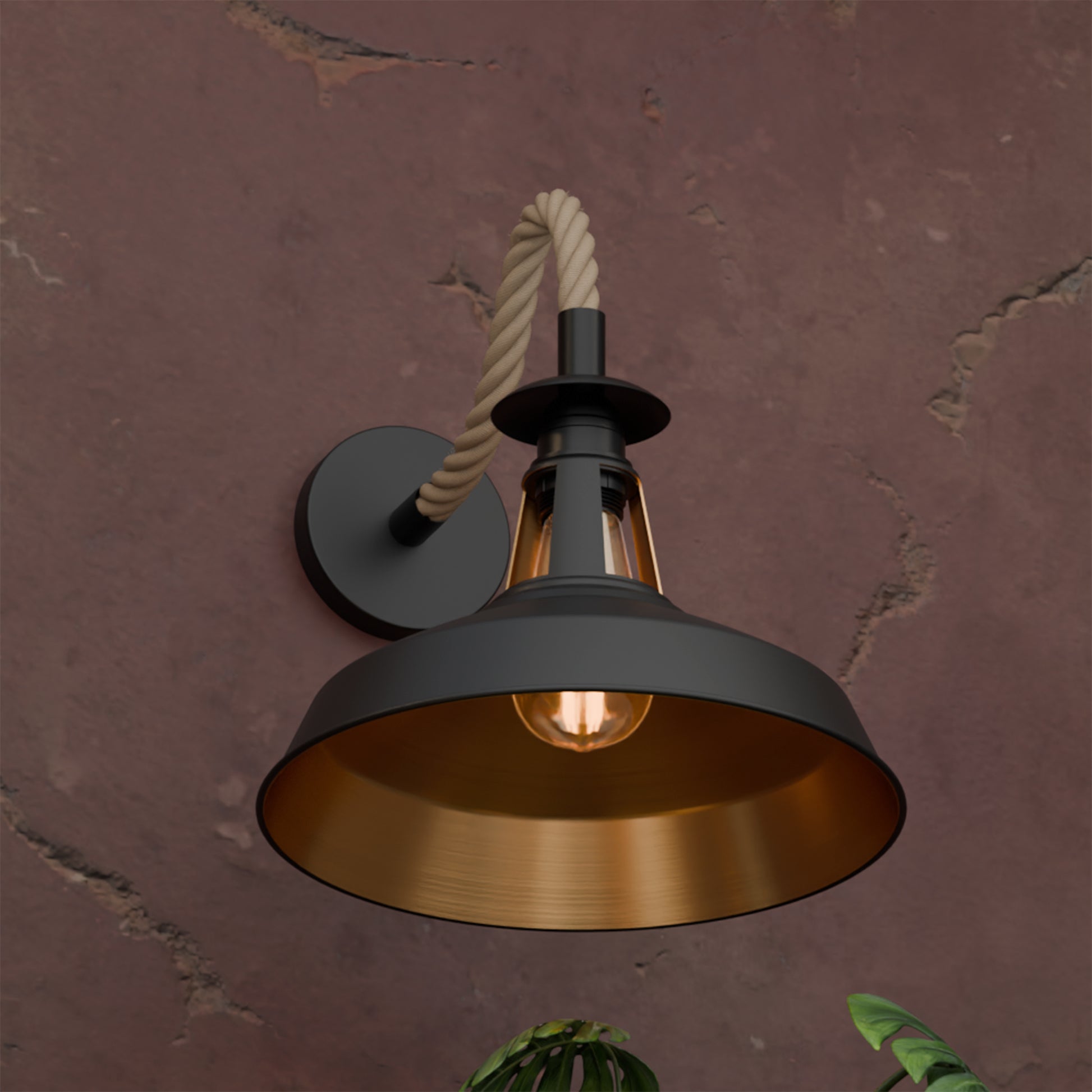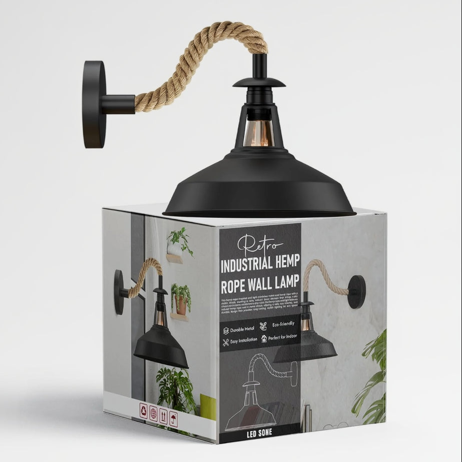 - Stijlvolle, vintage wandlamp met een gedraaide, met henneptouw omhulde kabel met kap, ideaal voor interieurdecoratie.