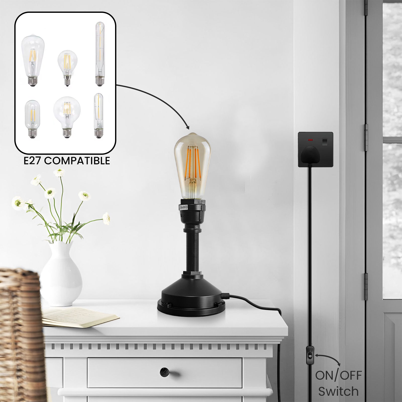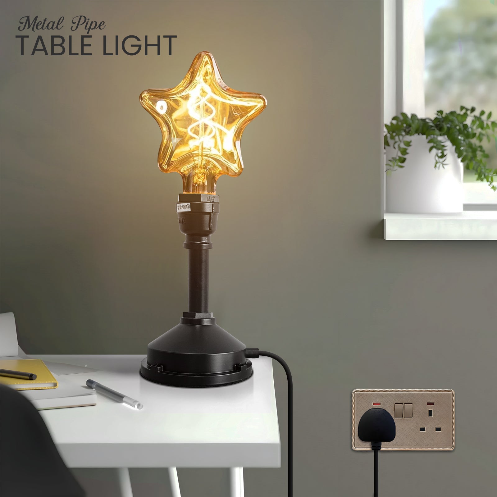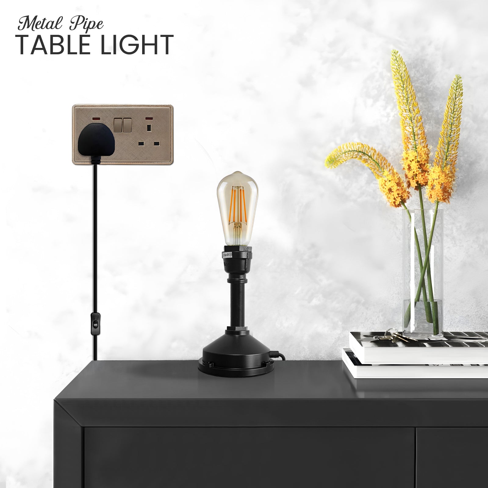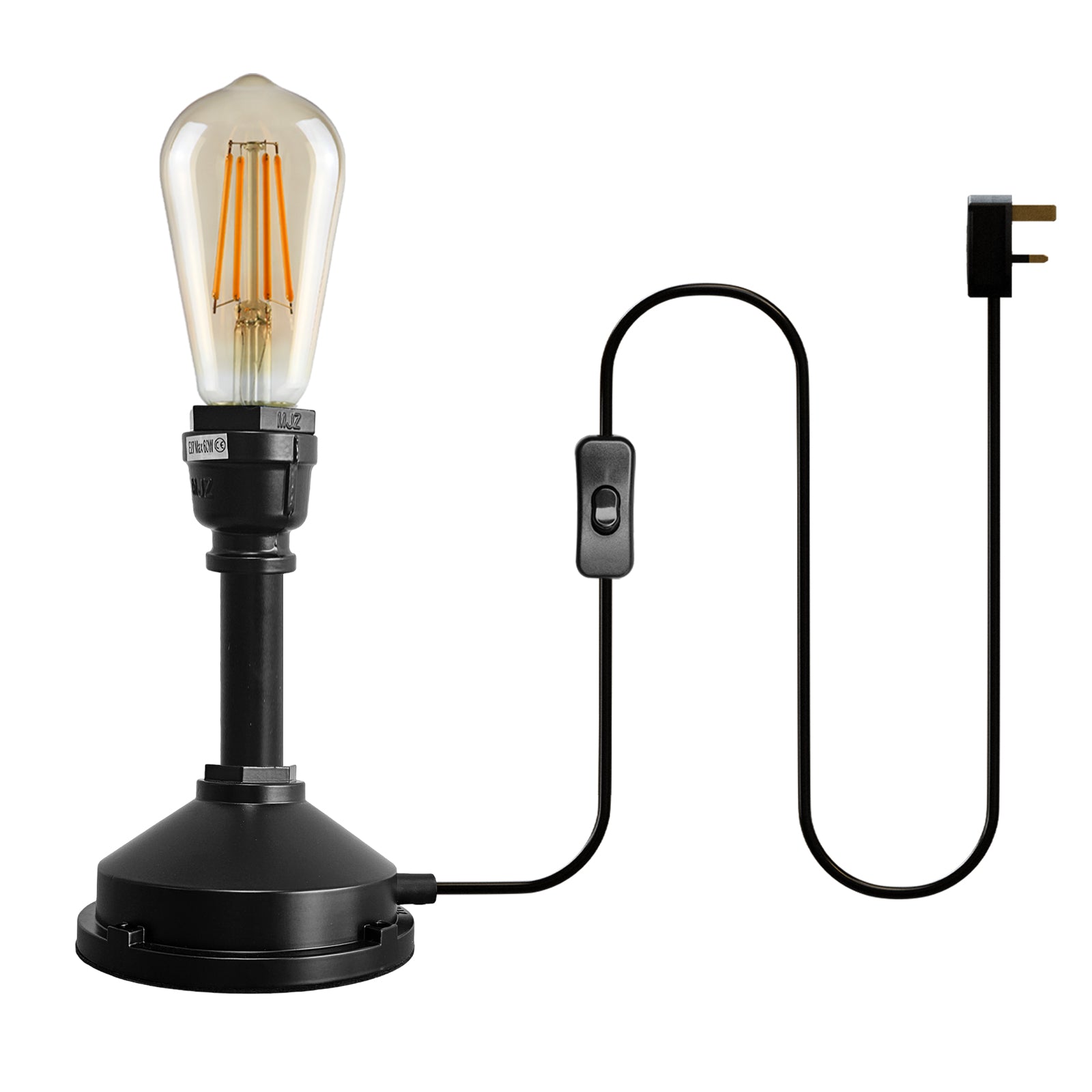 - De BS plug-in tafellamp heeft een rustieke uitstraling en is ontworpen met een ontwerp dat is geïnspireerd op een waterpijpvoet en een lange pijpvoet.