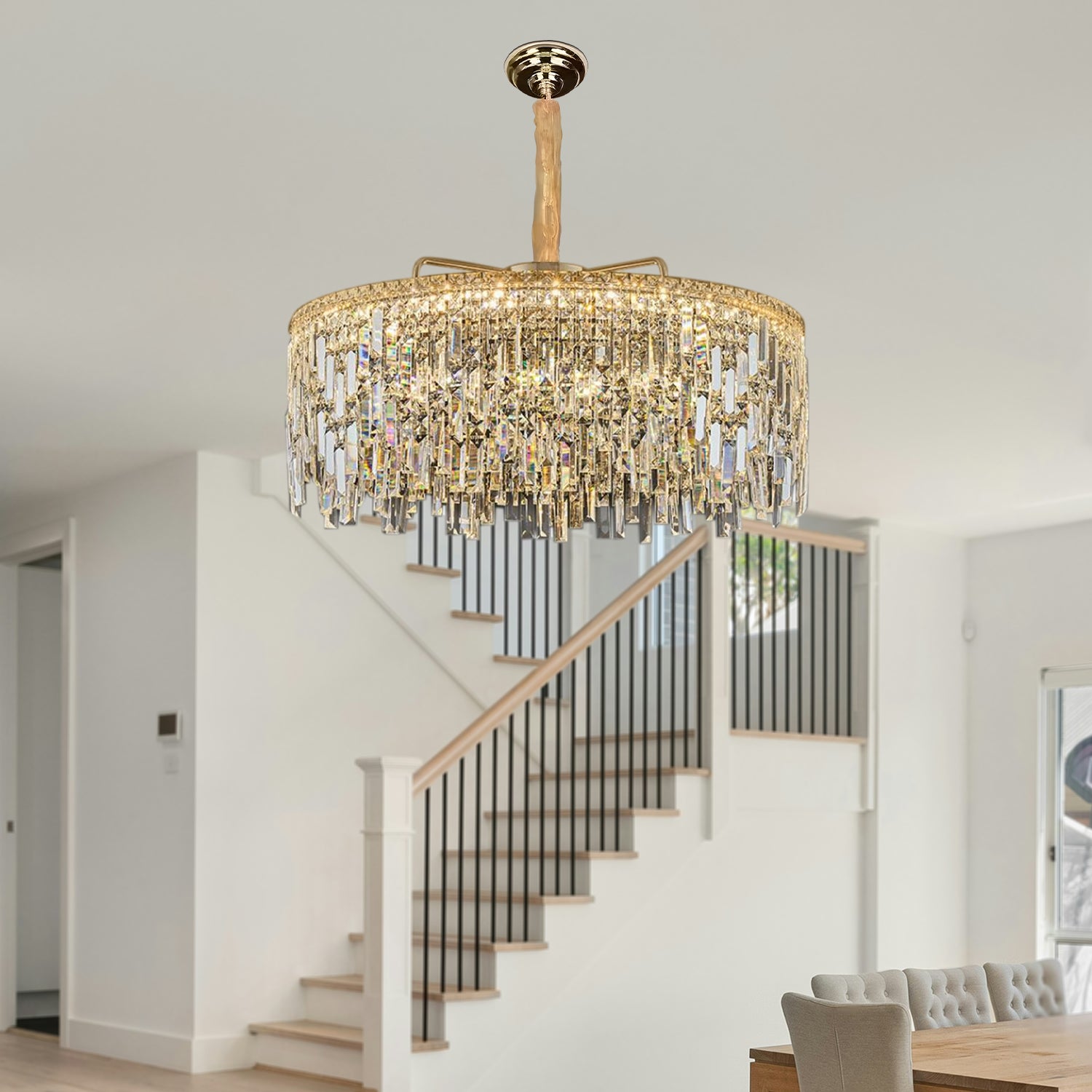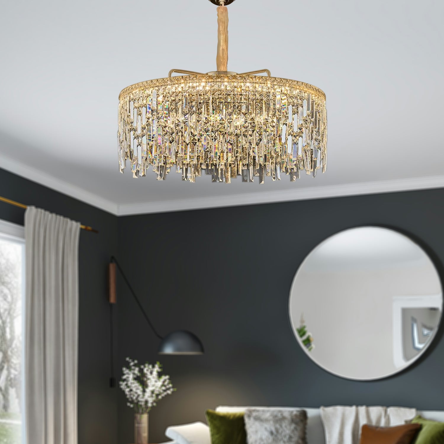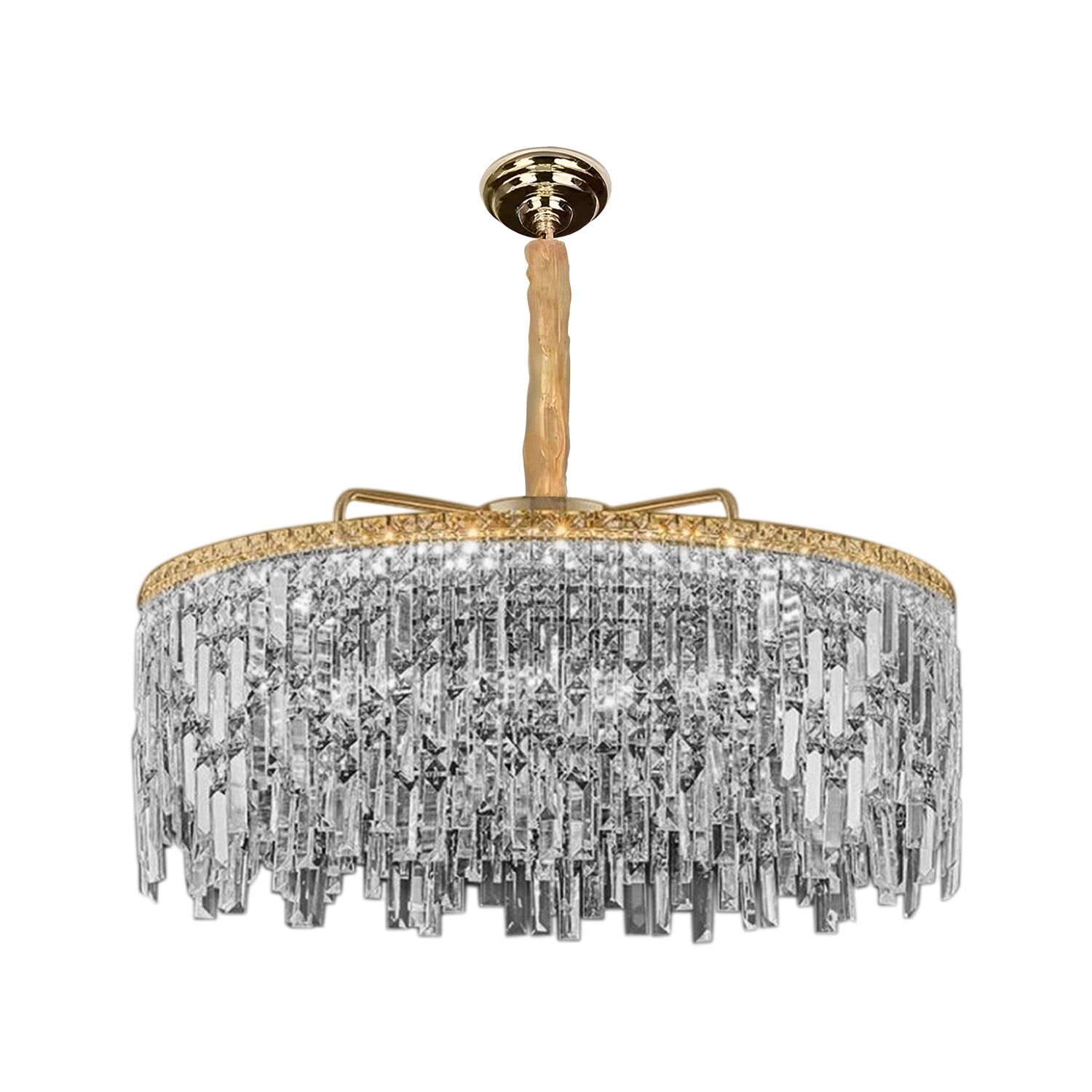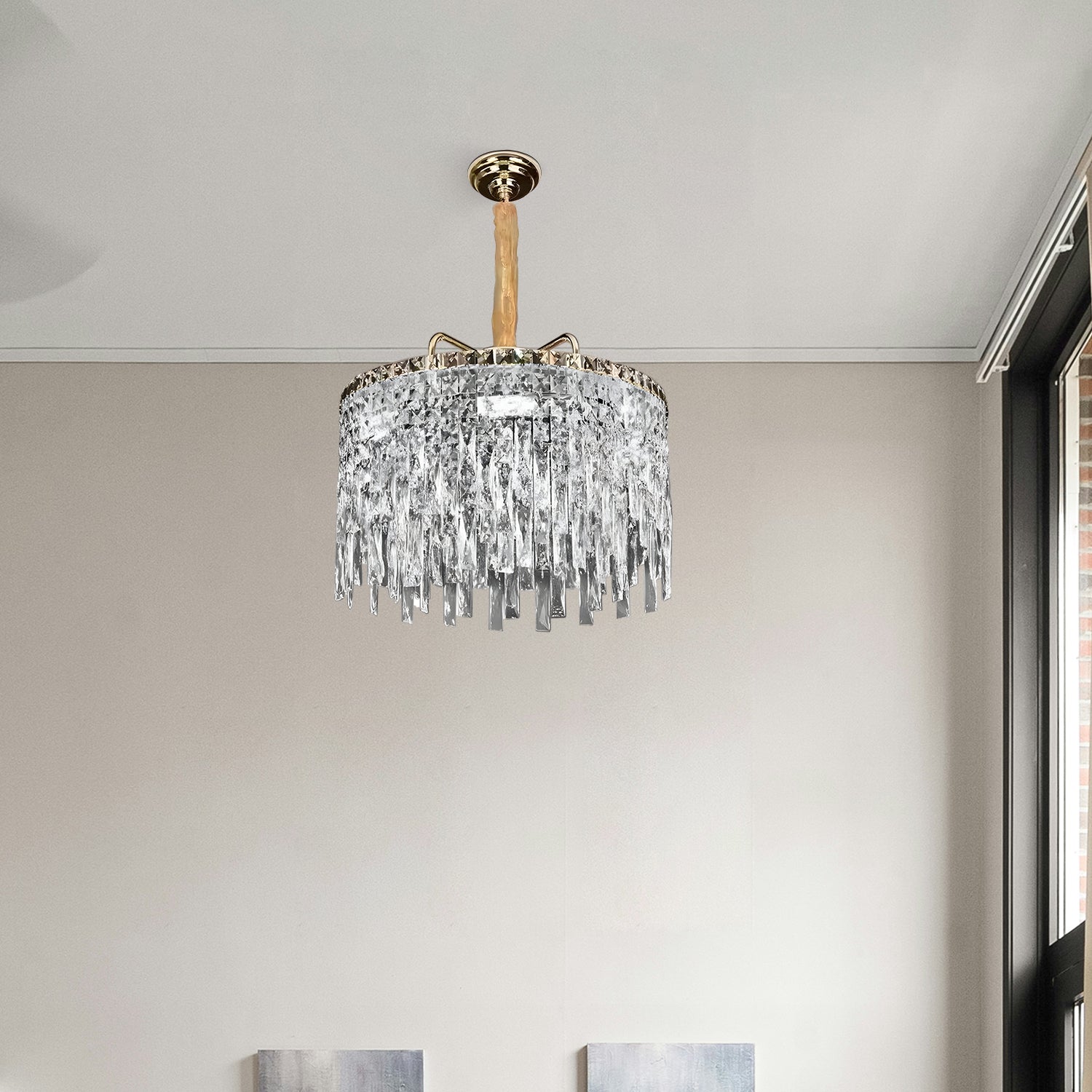 - Ontworpen als een frame met een heldere kristalafwerking voor een perfect aansprekend armatuur dat een unieke uitstraling heeft en aan het plafond hangt, waardoor de aandacht op specifieke gebieden wordt gevestigd.