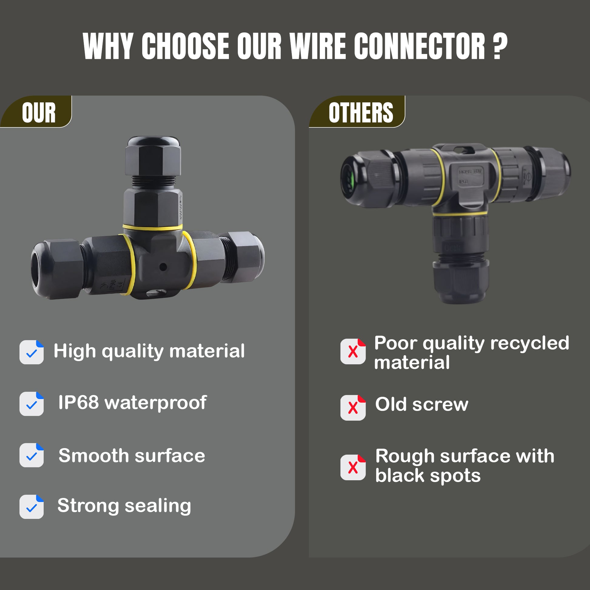 - Buitenkabelconnectoren zijn gemaakt van hoogwaardige materialen.