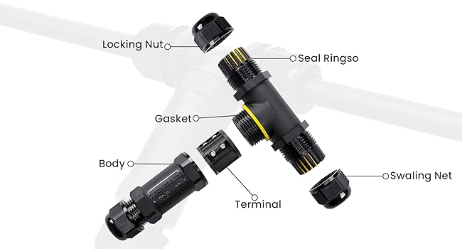 3 way Waterproof Junction Box Electrical T Connector~6414
