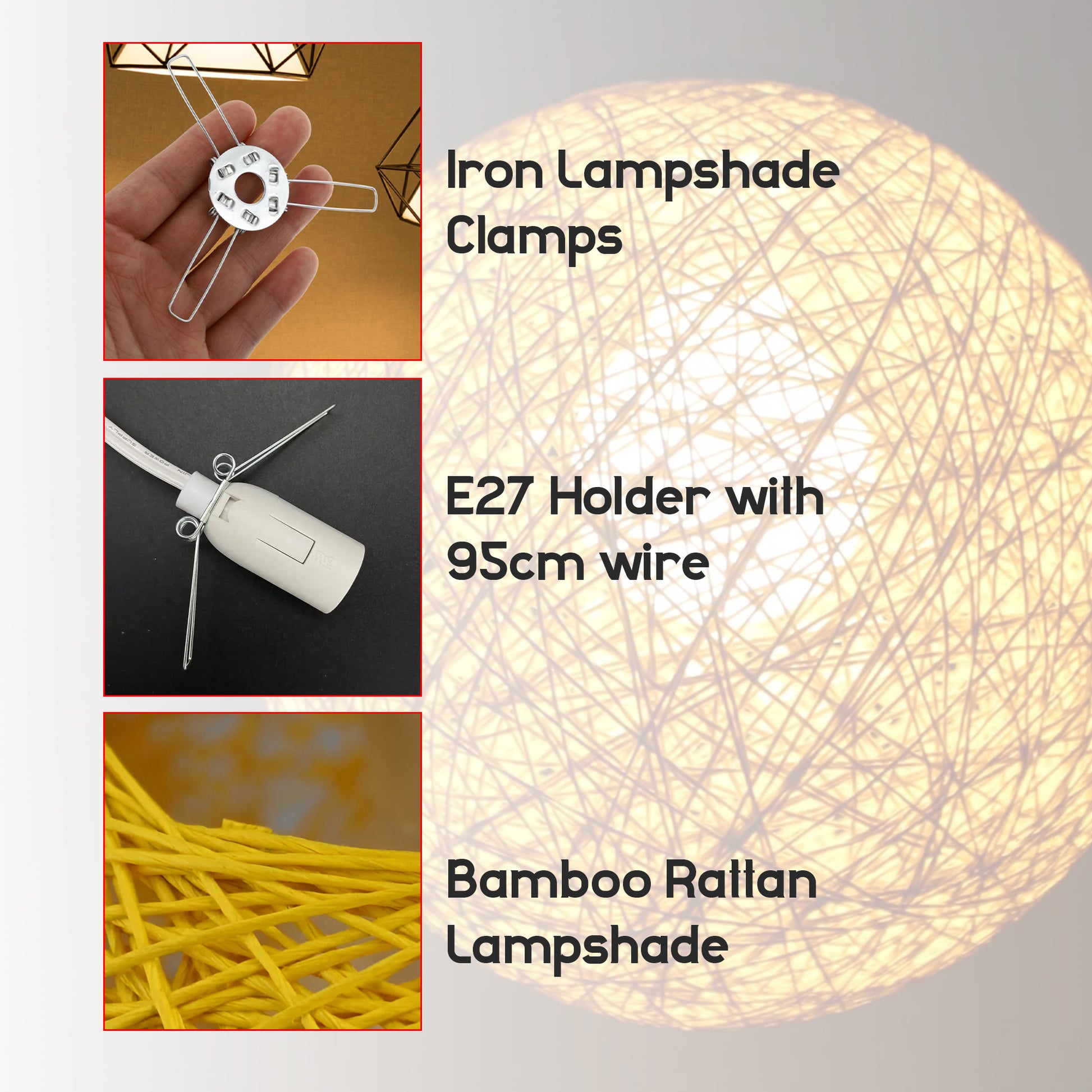 - 1 x Rotan lampenkap, E27 fitting met 95cm snoer, plafondkap met montagetoebehoren